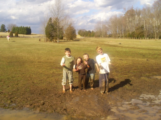 Last weekend Leanne took the kids to Richmond, VA to visit their cousins. Leanne's sister has a great home with lots of land, horses, a lake etc. The kids and Leanne love visiting. Everyone had a great time. One day was unusually warm and a surprise rain shower led to some fun in the mud. Carter, Maggie and Will had a blast, but Will is especially in his element!
